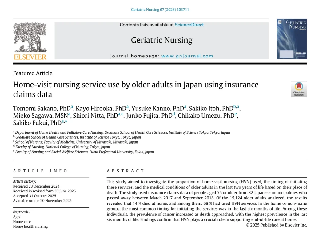坂野講師が筆頭著者、福井教授が責任著者の論文がGeriatric Nursingに受理されました
